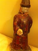 I immediately covered the hole with dirt and snow and tried to leave it as I’d discovered it; now wouldn’t you have done the same? And I have not unearthed it since. I know now, as do the strays and ravens, crows and other animals of the earth, that gnomes are not myths, legends or lore. They live outside our doors! The following pictures I share with you are actual photos of my “Rudolph” (that is what I have chosen to call him). Yes, this is a wood carving I did myself of the actual gnome I got a gander at that fateful magickal winter day…