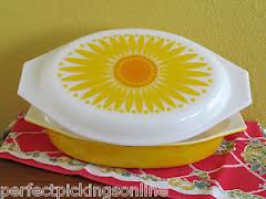Here are a few examples of things my mother had that made me happy: Pyrex bowls, Tupperware, and yellow and white checked table cloths…