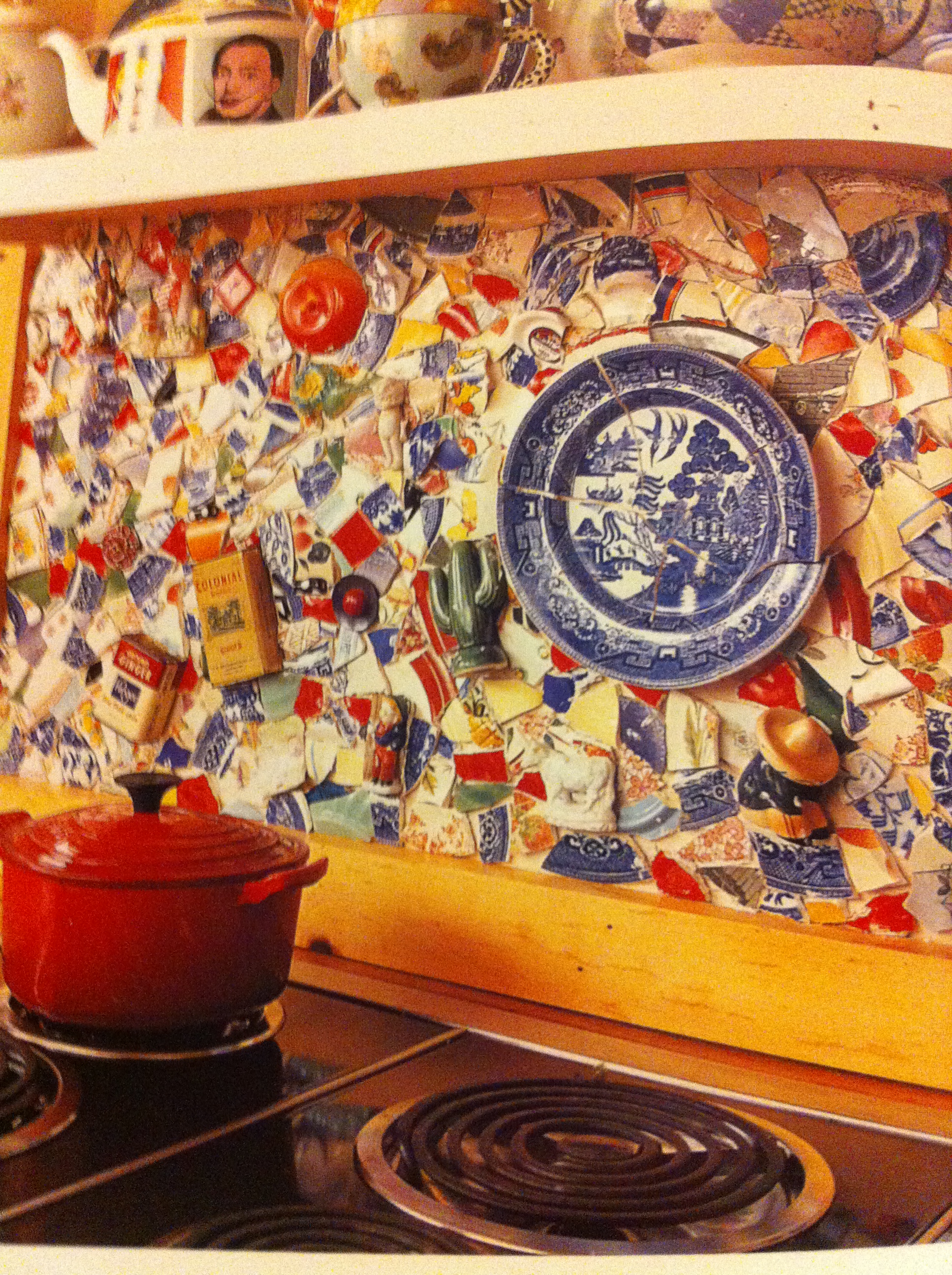 Why mosaics? I like the shiny full color allure of “coffee table” books. The large exotic collection of pictures I never tire of. There are three such books I am finding myself picking up over and over. I’ve owned them for years. I share them with visiting children, I open them for peaceful reflection, I am in awe of the peace it brings me. I could troll the internet, sure, and I do, but I love real hardcover books with that torn book jacket and that library smell. This is one I have loved, “Making Bits & Pieces Mosaics,” by Marlene Marshall. The pictures never grow old, to me. Perhaps growing up in a hoarder’s house, I like the presentation of ‘ordered chaos’ that mosaics bring to life. Broken pieces with uses. I love the physical act of handling the grout, creamy and white in my fingers…swiping, applying it. I have heard some say mosaics are tacky. I completely disagree. Each broken piece has a history; it once had a use. It’s repurposed and to me, lovely. Let me show you a few pictures from my book: