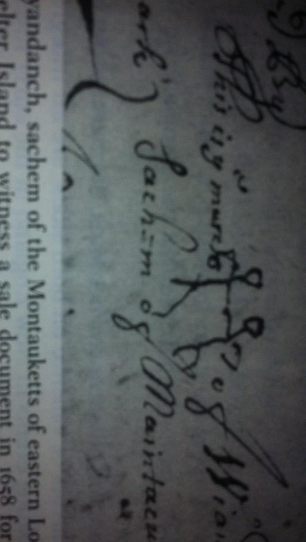 BELOW: Note the Native American “signature” of (stick)men shaking hands, at the bottom of this document signifying a transaction concerning Shelter Island, Long Island.
