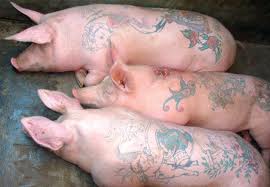 Now, about tattooed pigs. Well, there’s a Chinese man by the name of Wim (I can’t make that up) who tattoos pigs in China. That’s a FACT. Moore’s book is fiction. However, The Memory Artists is FILLED with so much research that it reads like non-fiction. It will blow you away. It reads like a tattooed pig. You can’t believe it’s fiction. Much in the same way that you can’t believe that Wim really tattoos pigs. See? Wim’s work is not whimsy. It’s as real as these: