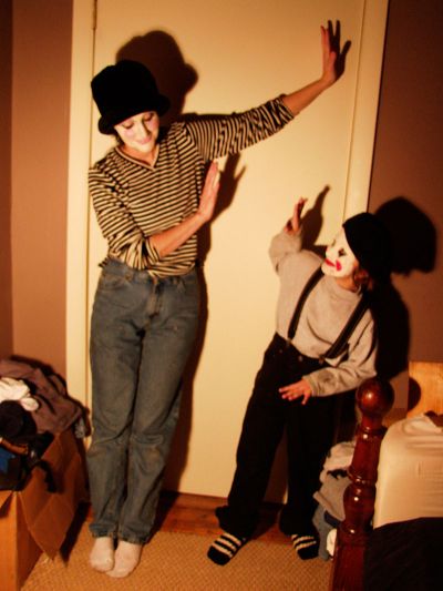 I remember when I first made a mental checkmark on mimes. I was 13 and a Freshman. We’d just filed into the gymnasium and sat in chairs before the stage, awaiting some kind of an assembly which I figured was going to be a “pep rally” or Christmas play. I was wrong. Mimes in full make-up and costume took the stage and I sat up straighter. Mimes pulled an invisible rope, threaded a nonexistent needle, walked against the wind, tried to feel their ways out of invisible boxes. I was hooked! |
