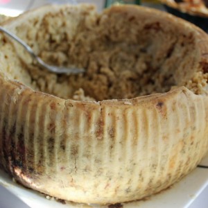 Look yummy? You may want to rethink that… This Sardinian delicacy involves leaving pecorino cheese out to ferment in the sun. That attracts “cheese flies” which then infest the pecorino with maggots. Some people drill holes into the cheese and deposit oil into the centers to attract the cheese fly, which then lay hundreds or thousands of eggs within the cheese. When the maggots hatch they digest the aging pecorino and release an enzyme resulting in a fermentation process.