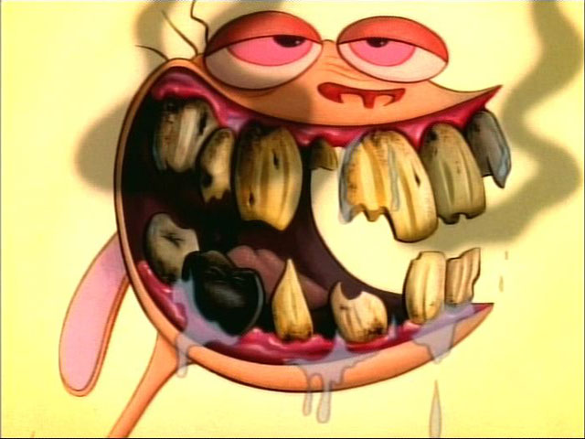 Remember the Ren and Stimpy show? This is Ren, created by Canadian animator John Kricfalusi. The cartoon aired on Nickelodeon in the 90s. My father used to get slap happy to that show. That is to say, I remember him laughing it up, slapping his knees. I thought the kids’ cartoon was funny too, but we all laughed a little louder because he laughed so hard. These were no titters, twitters, giggles, chortles or chuckles. Ren and Stimpy made him slap happy laughy.