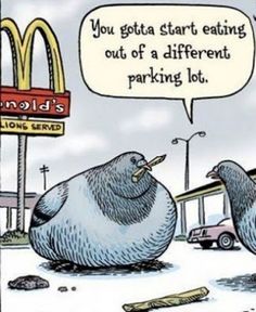 It held it there- balancing just like a Flying Wallenda of the aviary world; with the crumpled white bag in its talons and bobbing it’s head to peck at whatever fast food morsels were to be found in it. It reminded me of this meme I saw:
