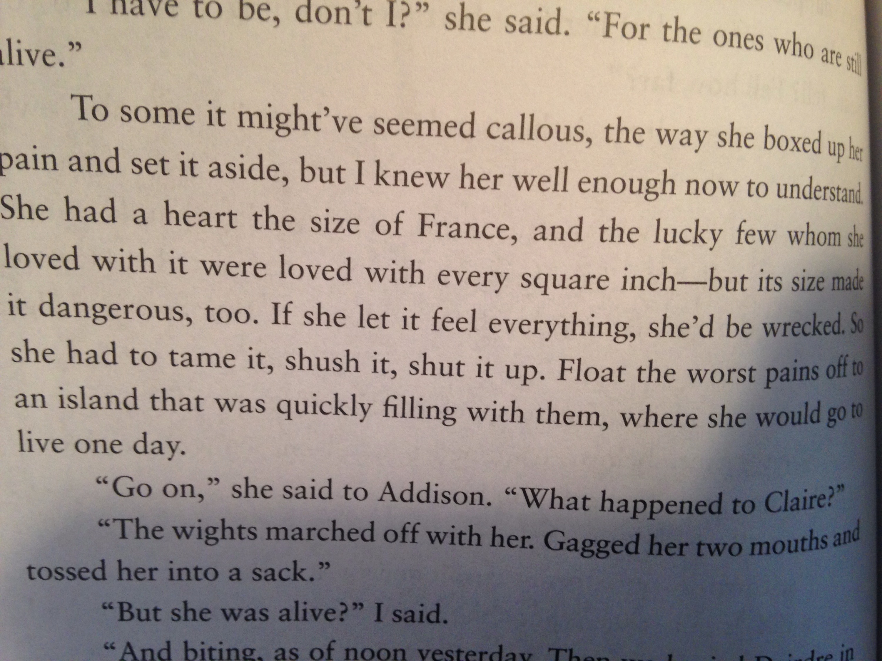 A heart the size of France! But she couldn’t feel everything with a heart that size; lest she be wrecked.
