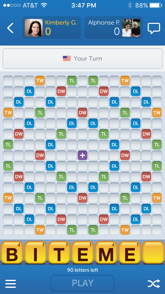 Now here’s a turn of phrase that popped up in a “words with friends” game after I drew letters randomly:
