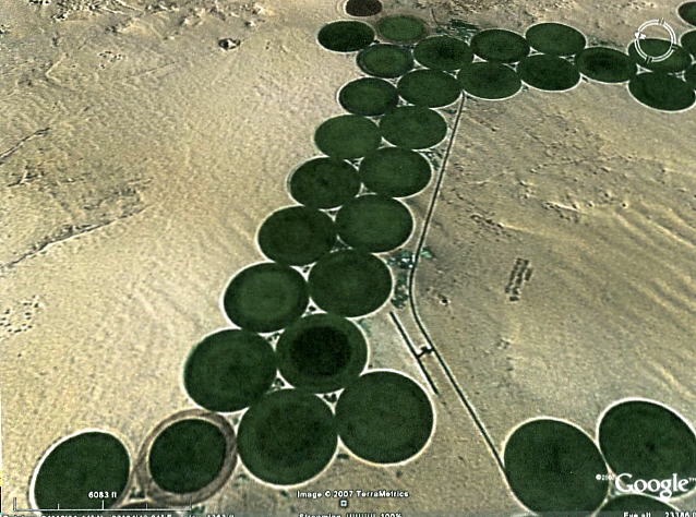 But these are actual Libyan crop circles, green circles in the desert seen often by people aboard aircraft flying over the desert.