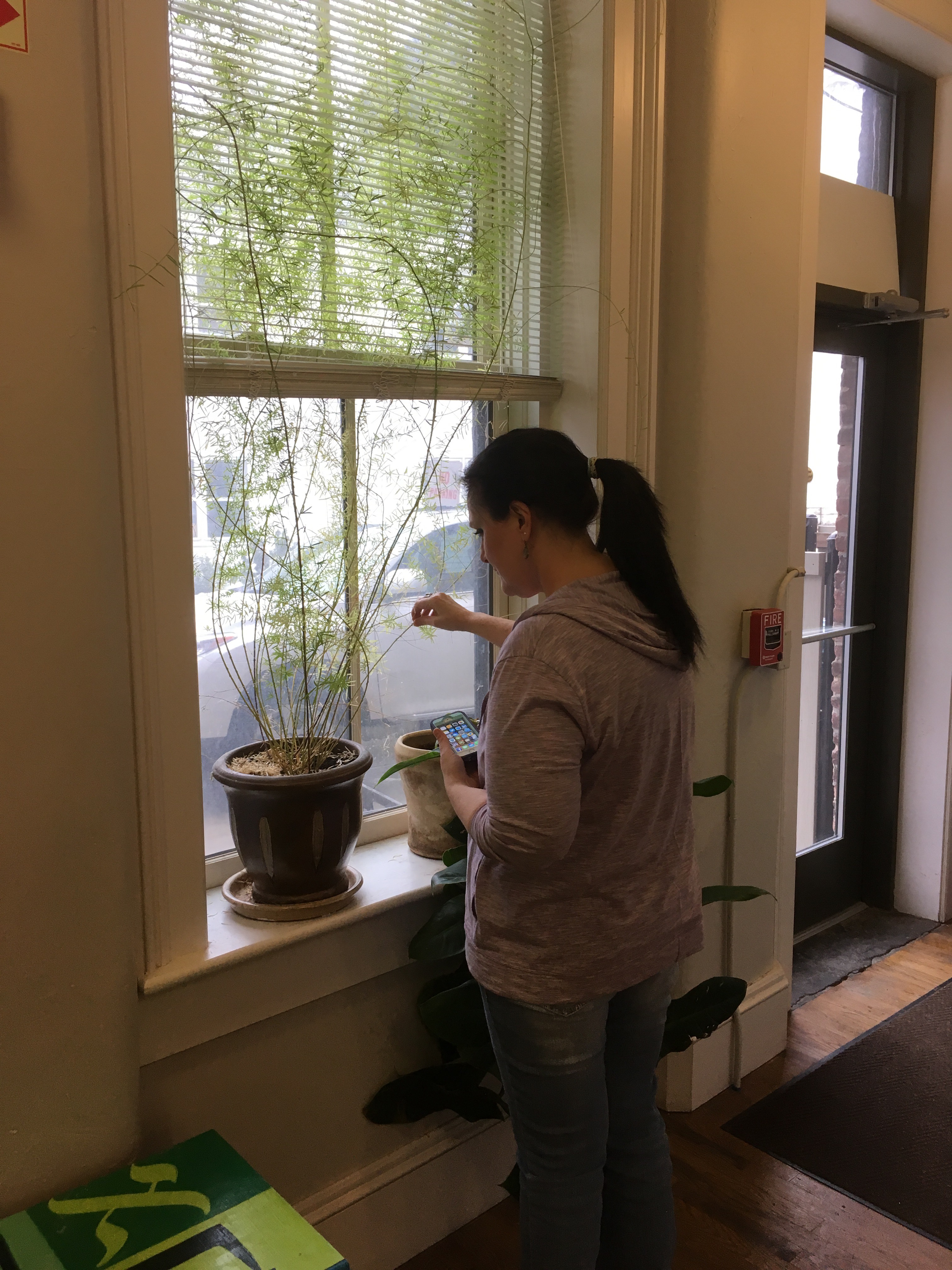 In recent news, I was able to meet some very interesting students at a collage workshop I “instructed” in Massachusetts @GoodPurposeGallery. In one photo is me, with students and Trish. In the other picture I am trying to decide if the beautiful plant in the window is real. It certainly was!
