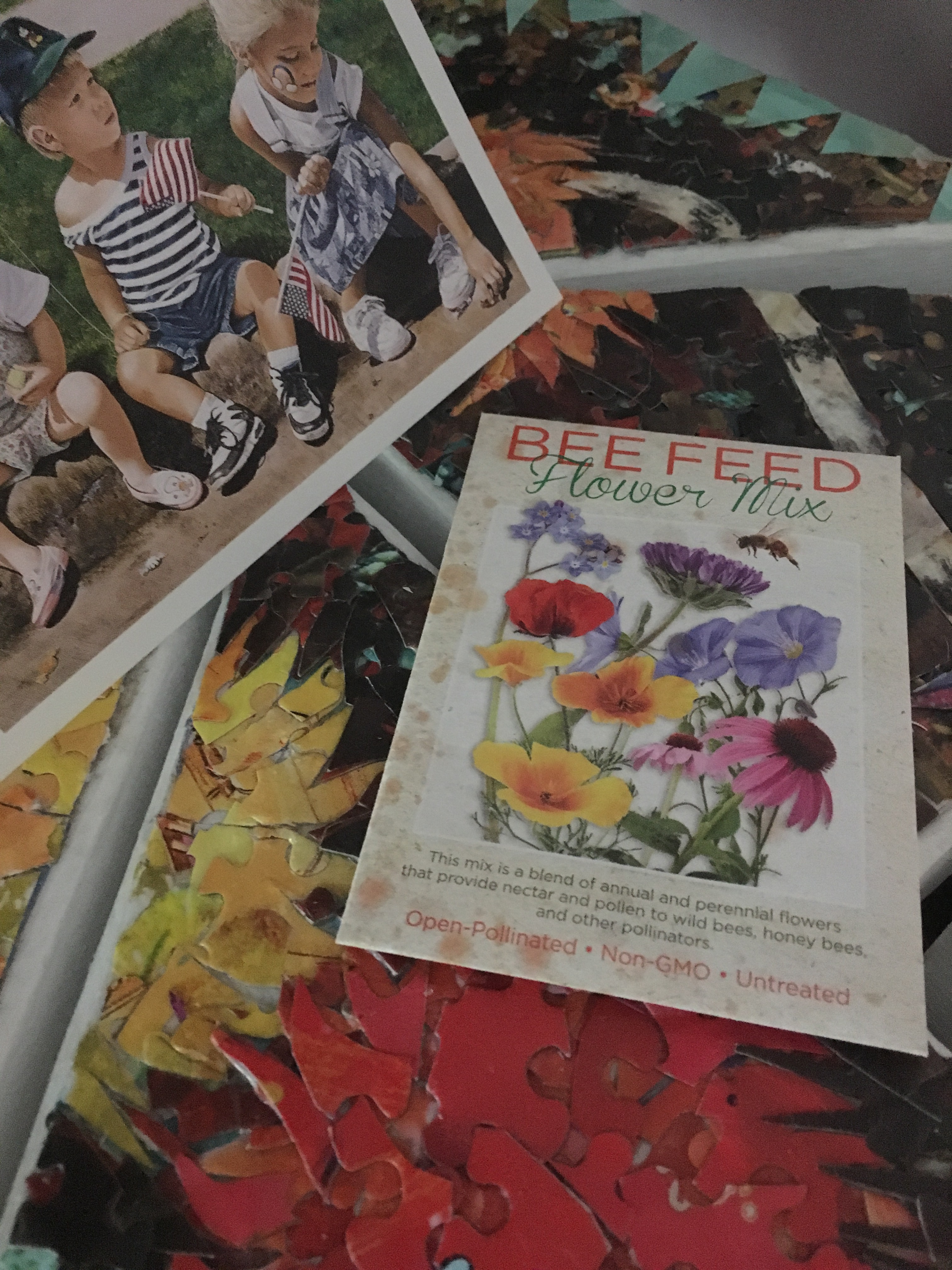 A seed packet arrived from friend Clay. And the seeds are working. Al was stung by a bee so …😍