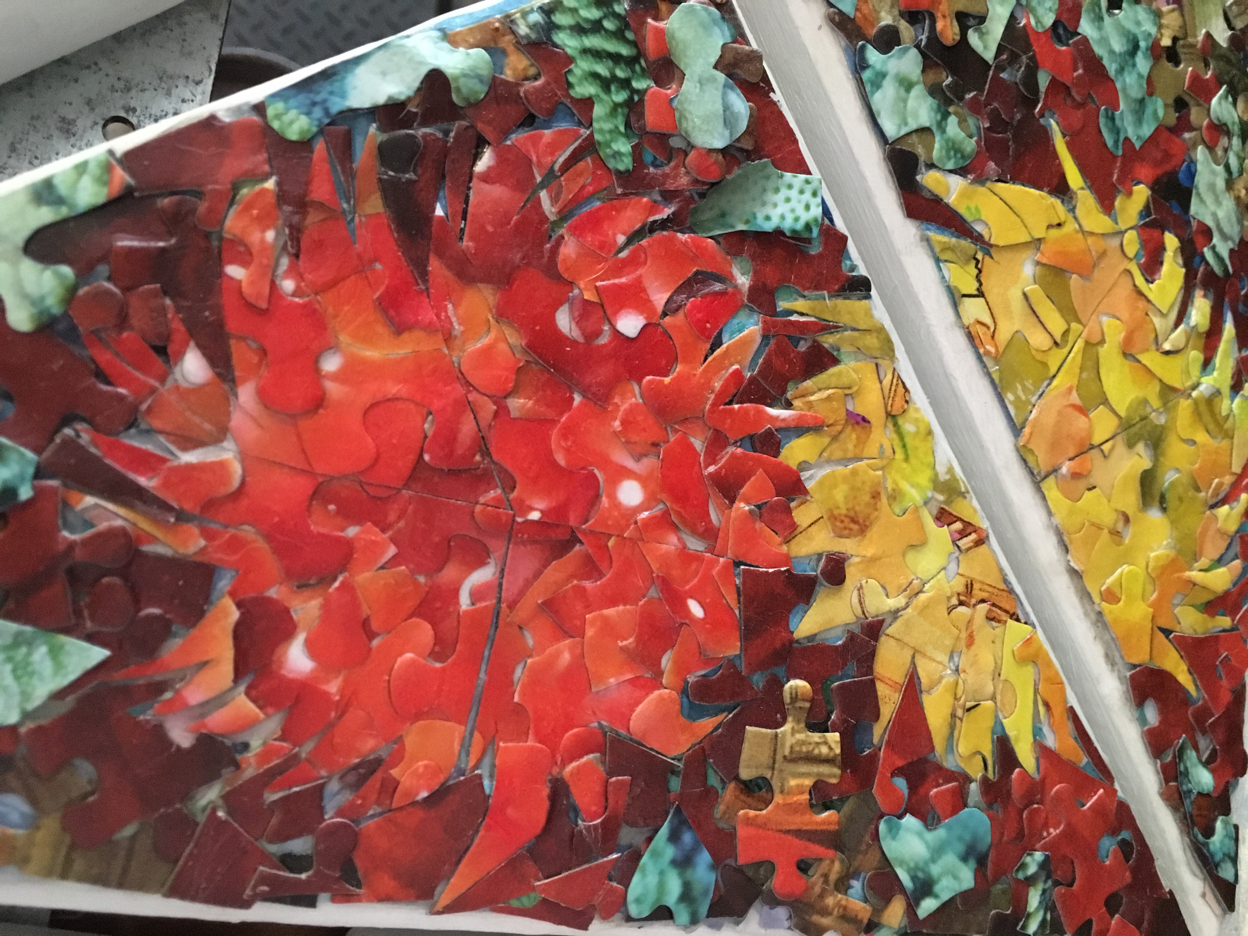 This is the male gnome, of which I have two. The other picture is a current project about environmental protection. You see here a collage in progress that almost looks like truffula trees but not quite yet.