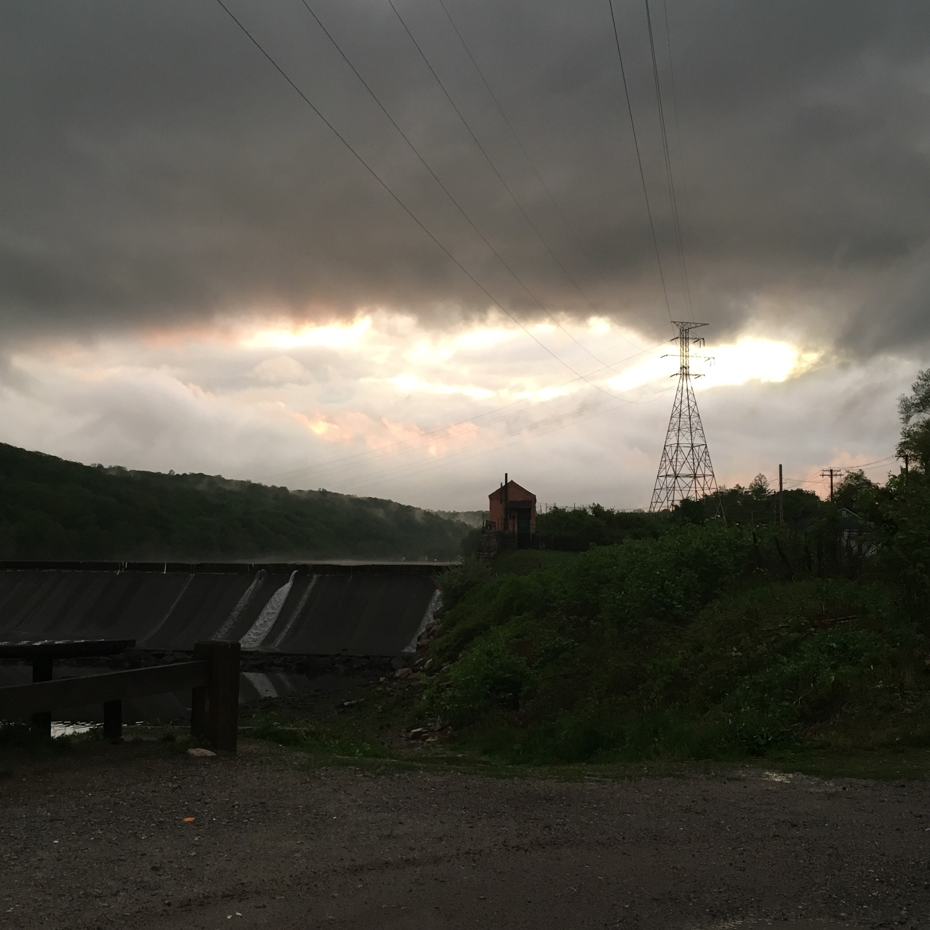 This is the sky by the dam, which apparently had gates closed. Because normally after pounding rains it is flowing pretty wildly. This is the calm after the storm. In areas, the atmosphere had a surreal peach glow and in other areas it was dark and gloom.