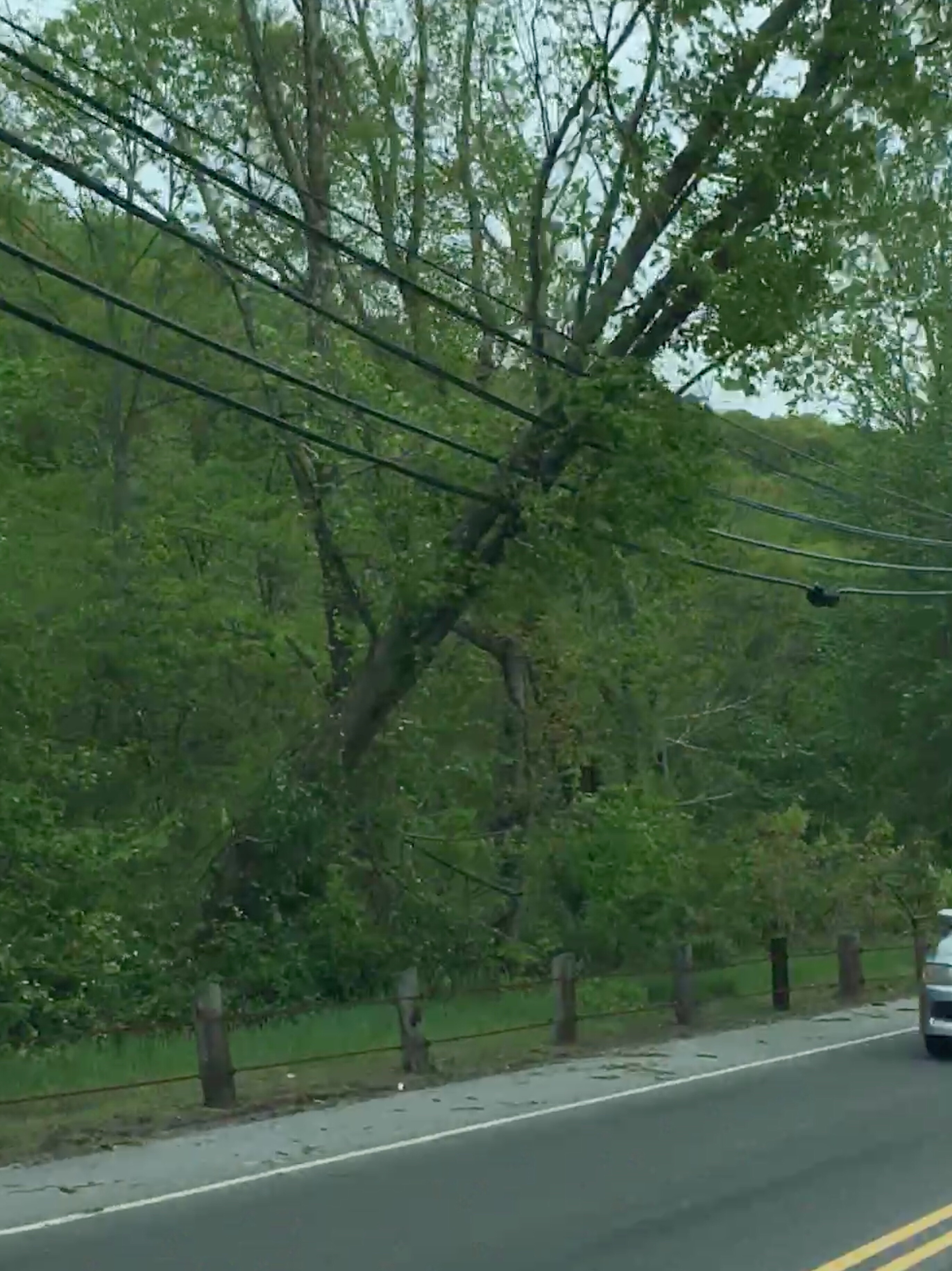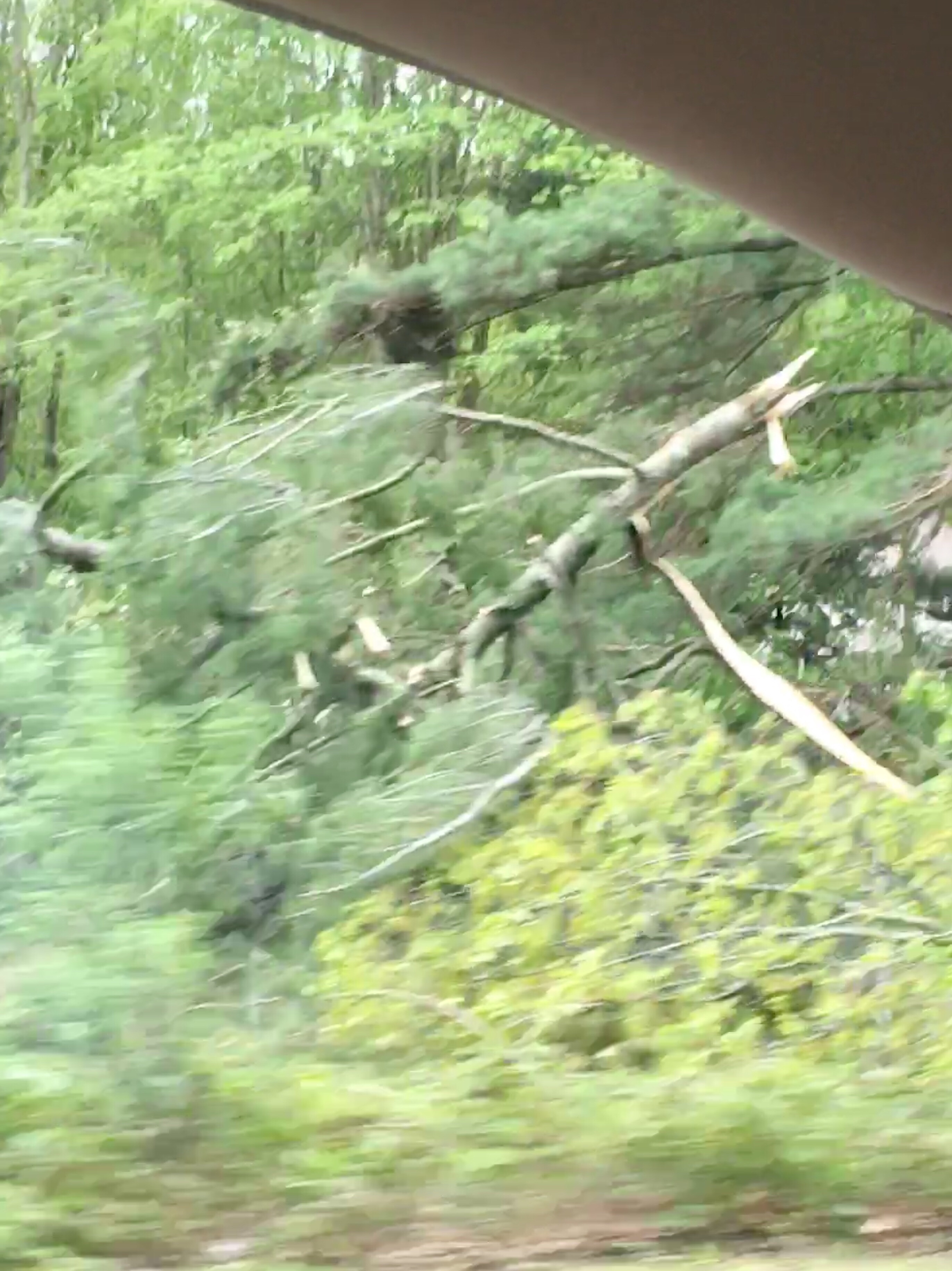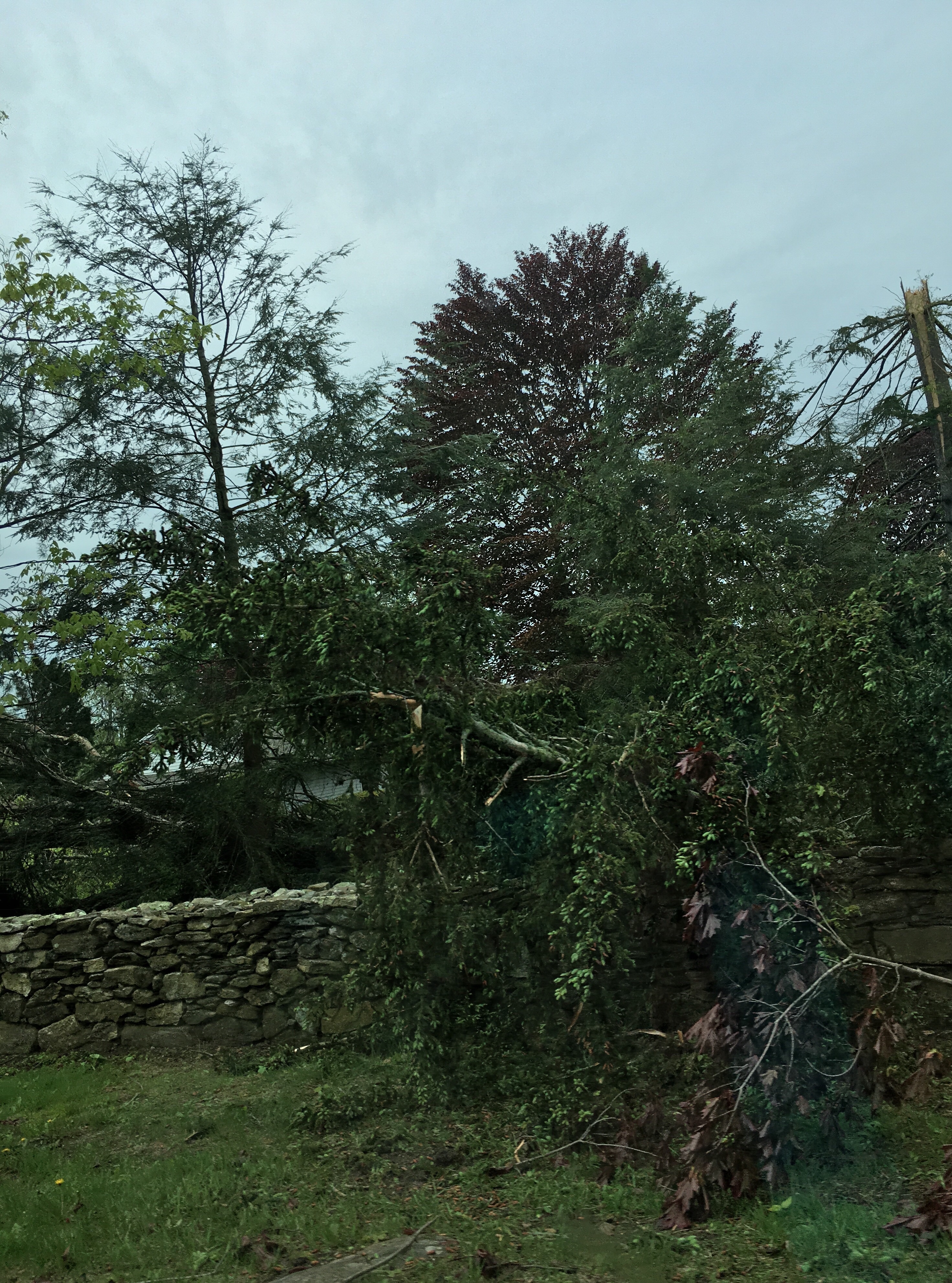 Here is some of the mess we saw, not very good pictures. One stately old colonial house had a huge pine sitting across its dented in roof. Many cars were buried under trees in their driveways.
