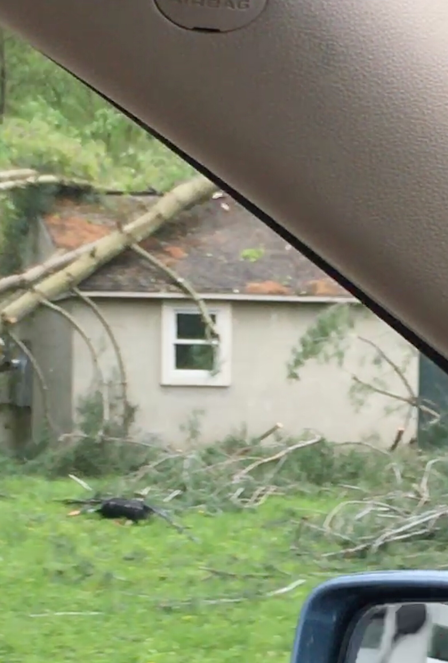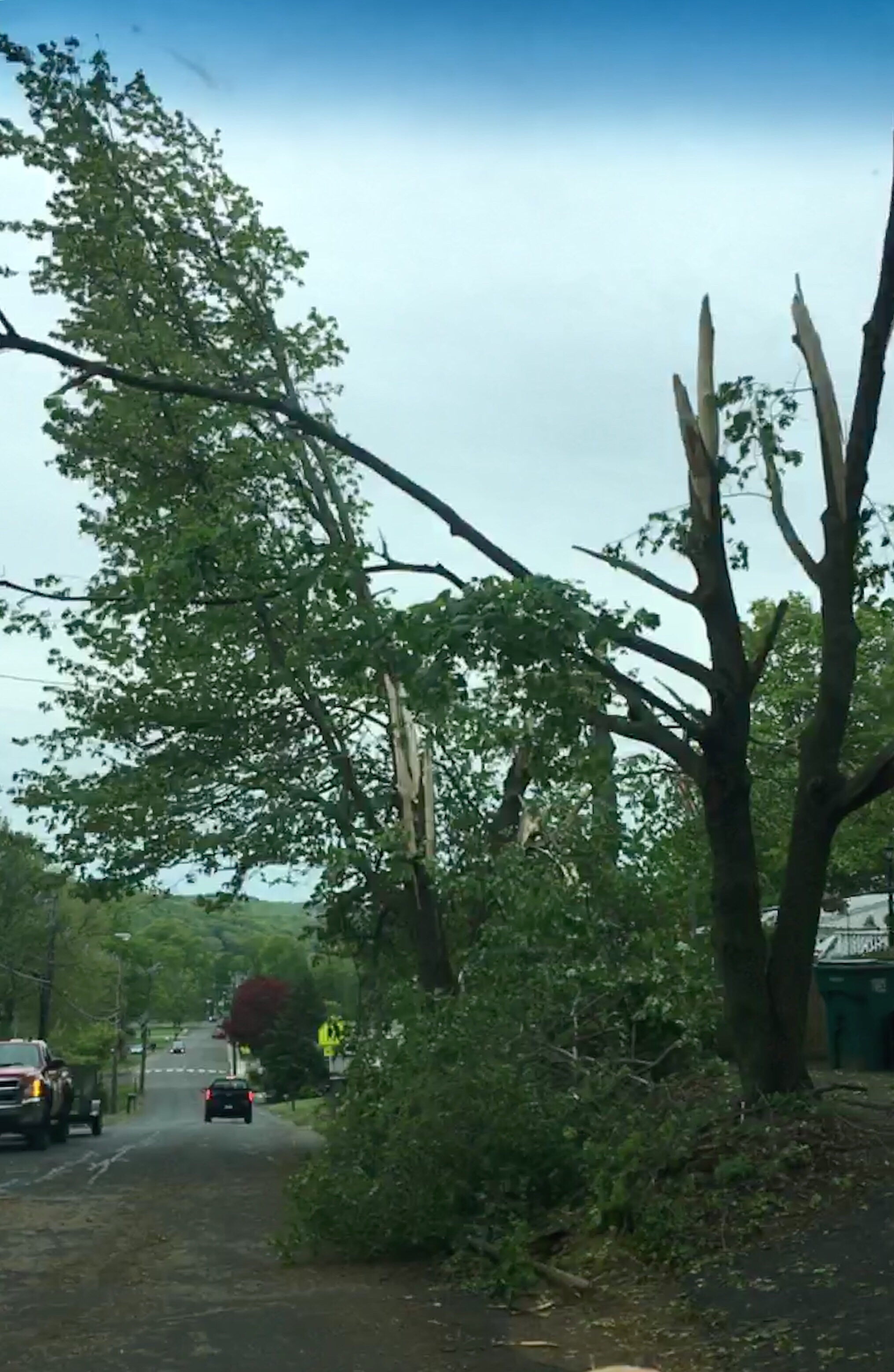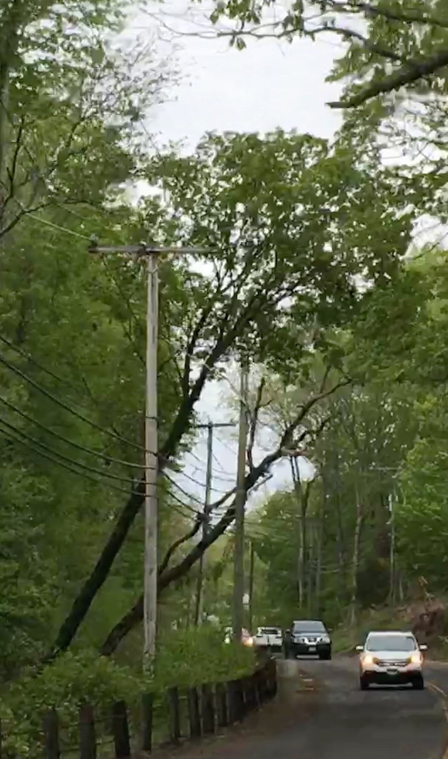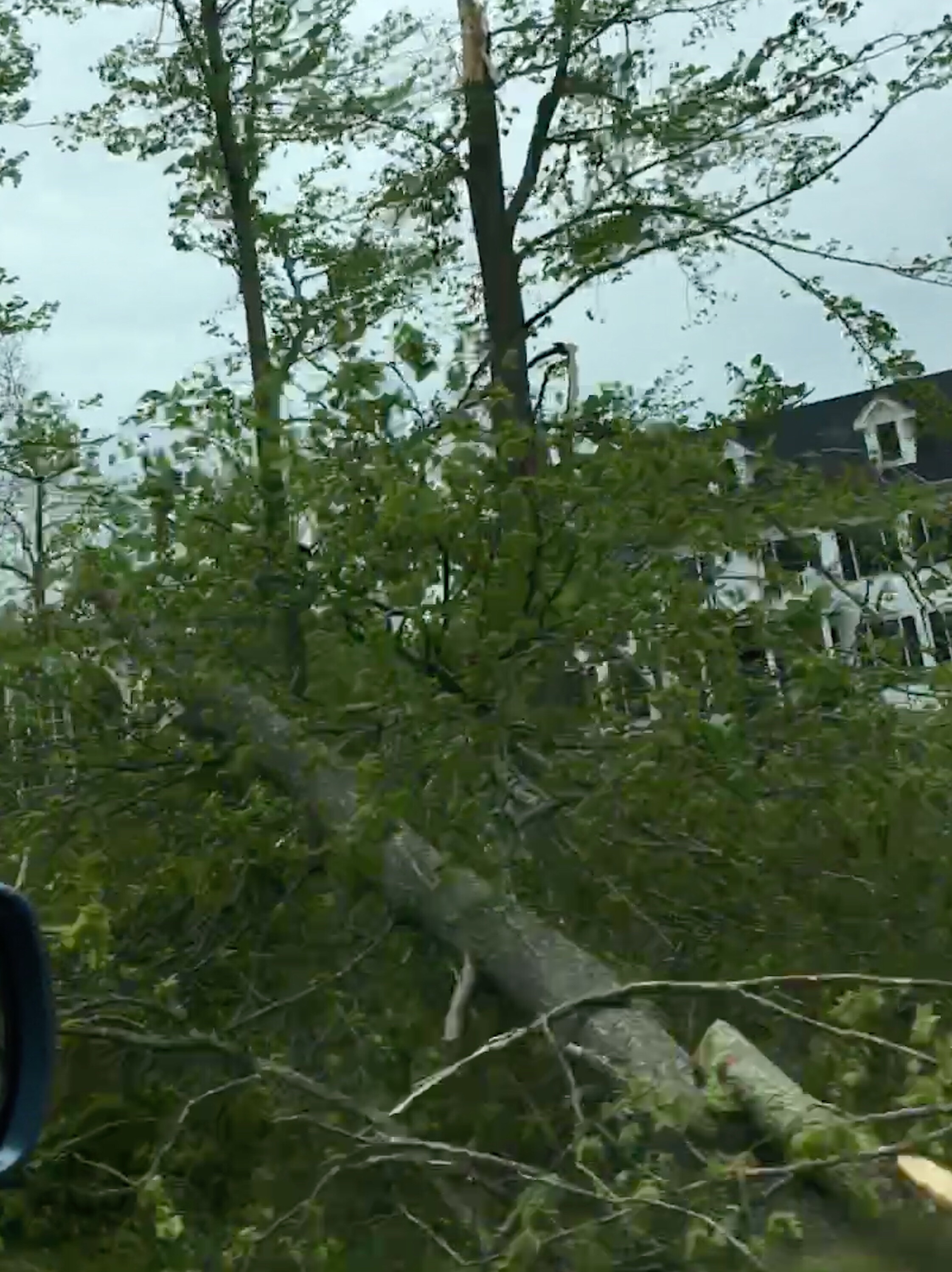 Here is some of the mess we saw, not very good pictures. One stately old colonial house had a huge pine sitting across its dented in roof. Many cars were buried under trees in their driveways.
