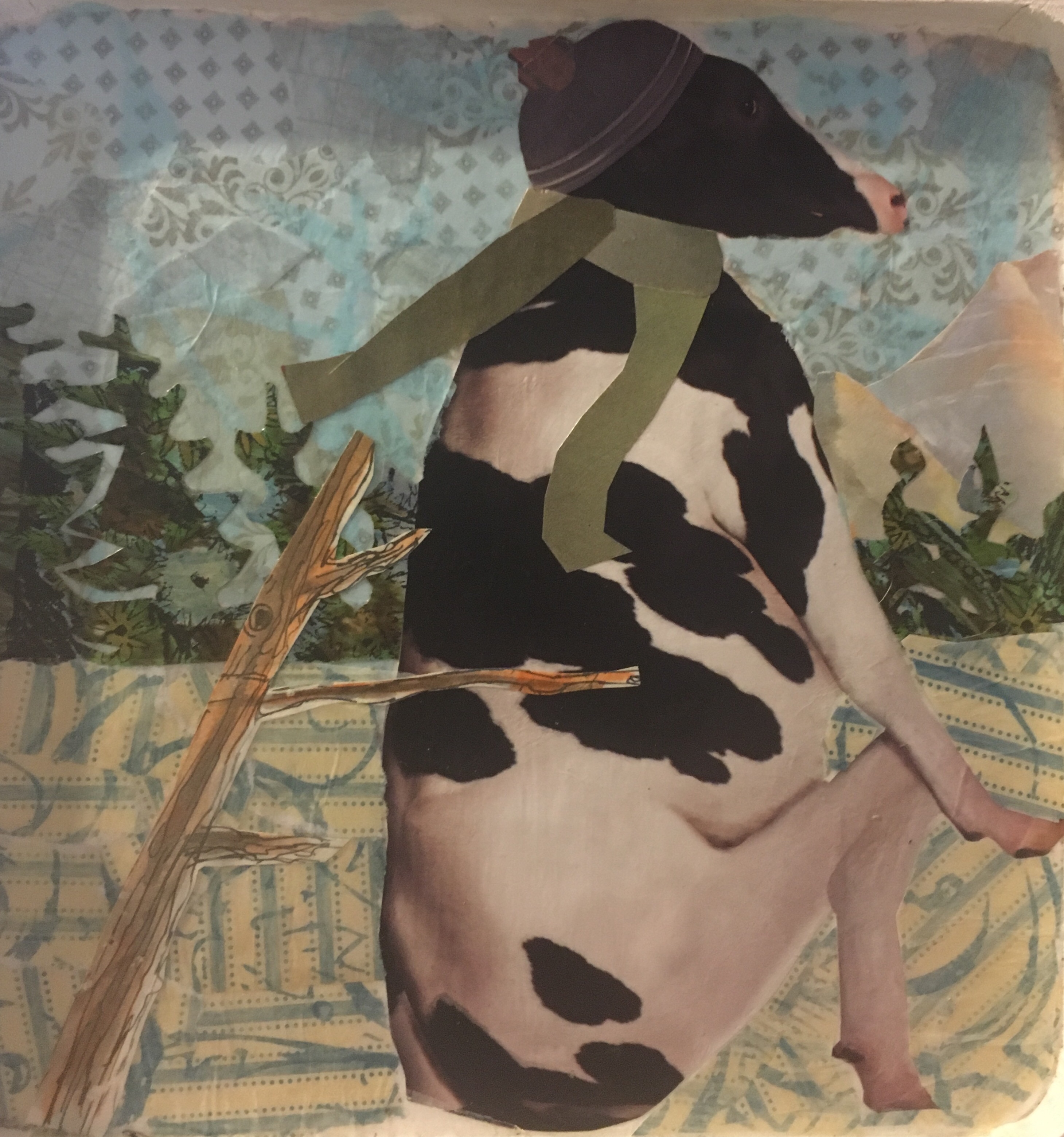 This is “Summer” and “Winter,” part of my “Cows Doing Yoga in The Four Seasons” series. Collage.