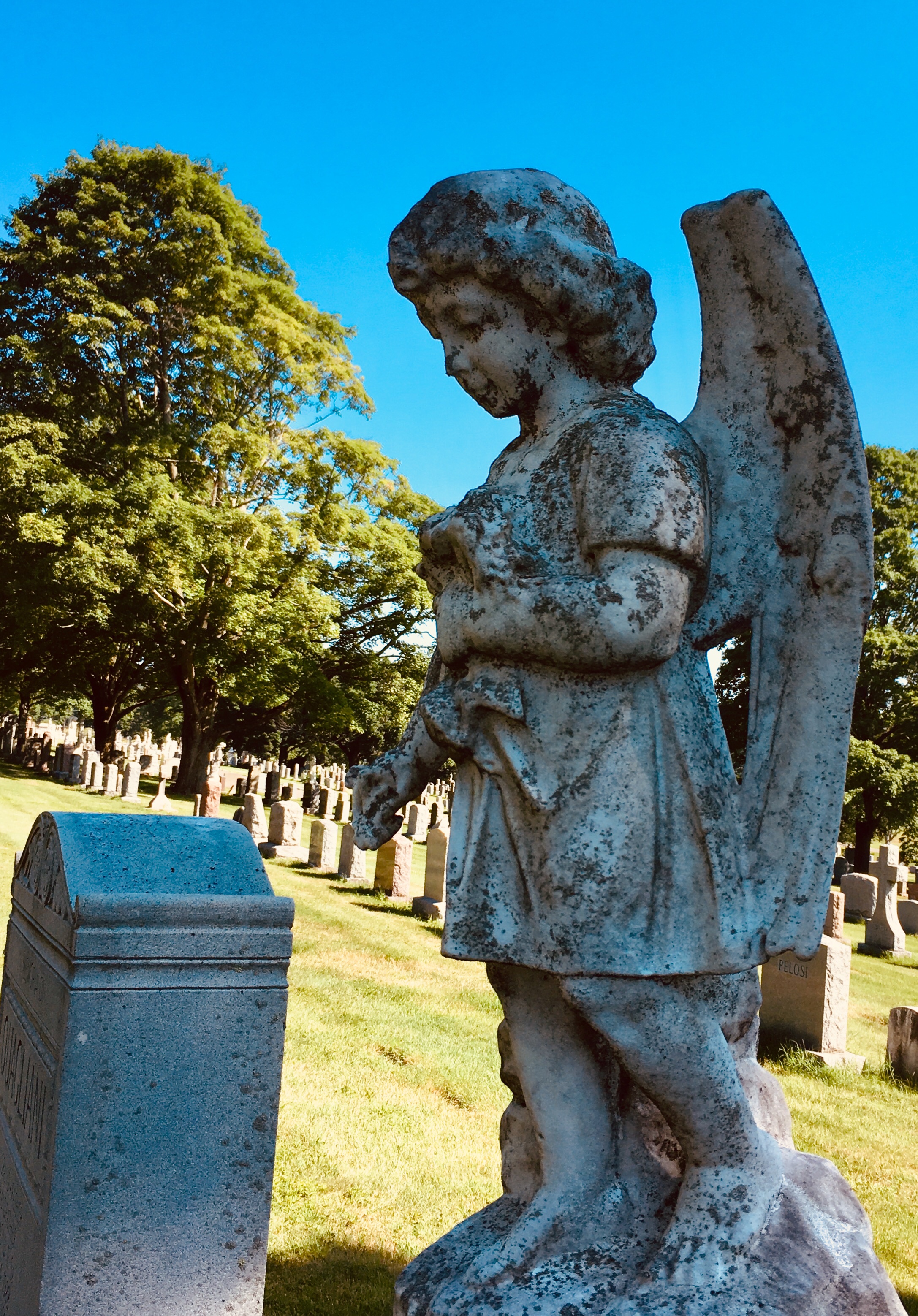 Inspired by my Facebook friend Ruth Christine Mortimer, who recently posted photos from an 1800s cemetery near where the Bronte sisters lived, I decided to take some photos in a West Haven Connecticut cemetery.