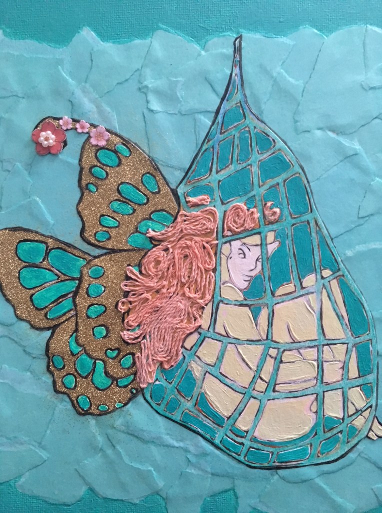 I know this, as my personal hobby of raising insects from pupa to moth, and my interest in cocoons and the art depictions of this topic can attest to: I’ve always been fascinated with what goes on IN the cocoon, and it is not likely I’ll actually get hold of a Gunnera leaf or Giant water lily to wrap myself, but I grasp the metaphorical sense of this being an actual thing going on right now. Of course everyone is going to be changed by this, transformed somehow.