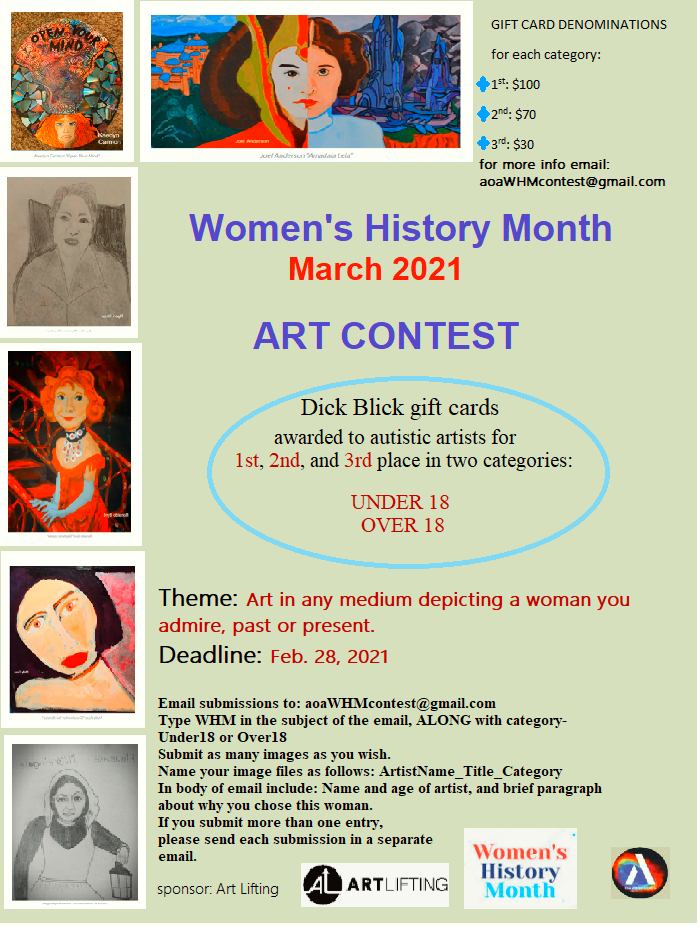 Announces the annual WOMEN’S HISTORY MONTH contest open to autistic artists.