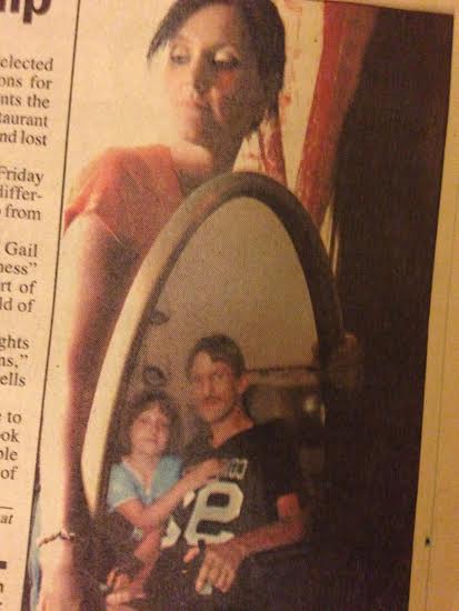 holding a mirror, reflecting Howie her late husband, and daughter Kerry Annie; (taken by Melanie Stengel.)
